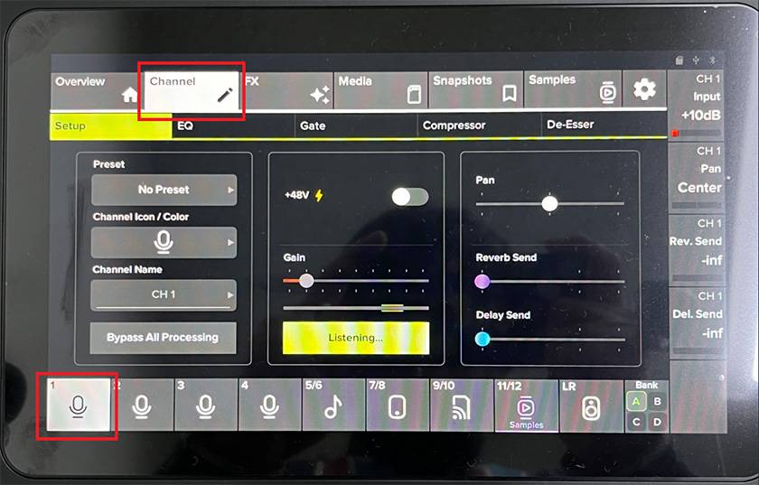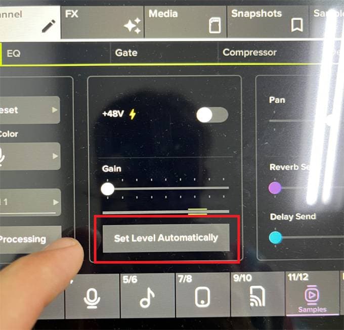 ココをタッチして、しばらくマイクに向かって喋るだけで適正なゲイン値を設定してくれます!
