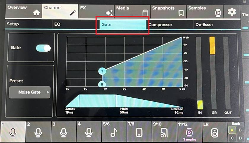 マイクを使用していない時の、僅かに気になる「サー」というノイズを抑えることができます。何人かで複数マイクを使用する時、喋っていない人のマイクに喋っている人の声が入らないようにしたりする時にも使えますね。