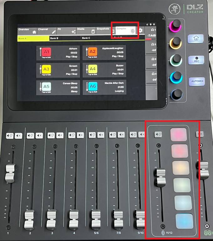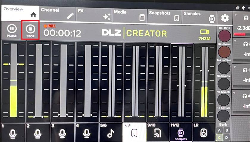 あとは、「REC_~」をタッチしていただければch9/10フェーダーで音を鳴らすことができます。
