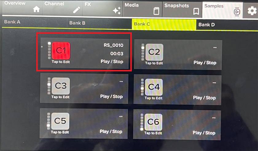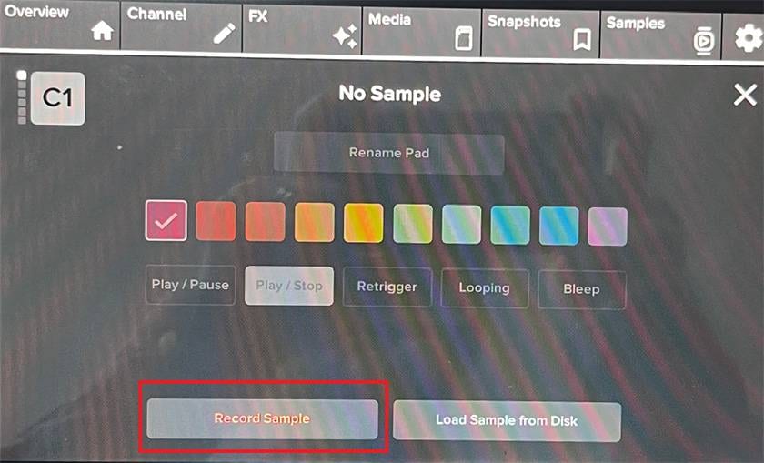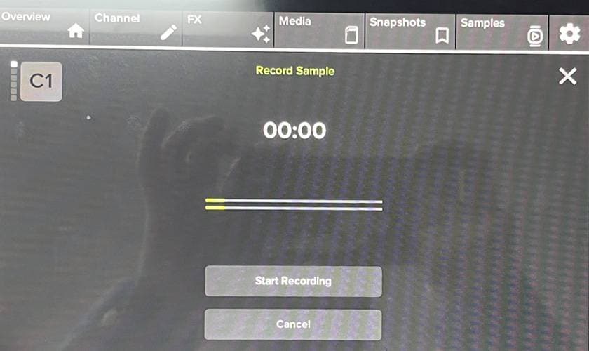 さらに、グレーアウトしていたC1をタッチすると、画面に「Recording Sample」の文字があるではありませんか。