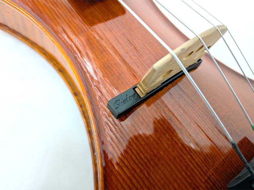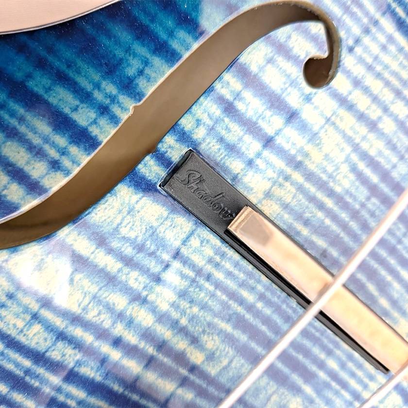 音色については写真の通りドイツメーカーの「Shadow」のピックアップが搭載されていますので、全く問題のない透き通った音色でした。バイオリンの生音に近く、エレキバイオリン特有の弓で弦を擦る際のサーという擦音も入ることも少ないと思います。アンプやエフェクト次第ではさらに多彩な音色が作れること間違いなしでしょう!