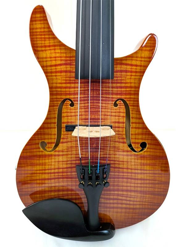 特徴:エレキギターでいうところの「セミアコ」のダブルカッタウェイボディの形のエレクトリックバイオリン