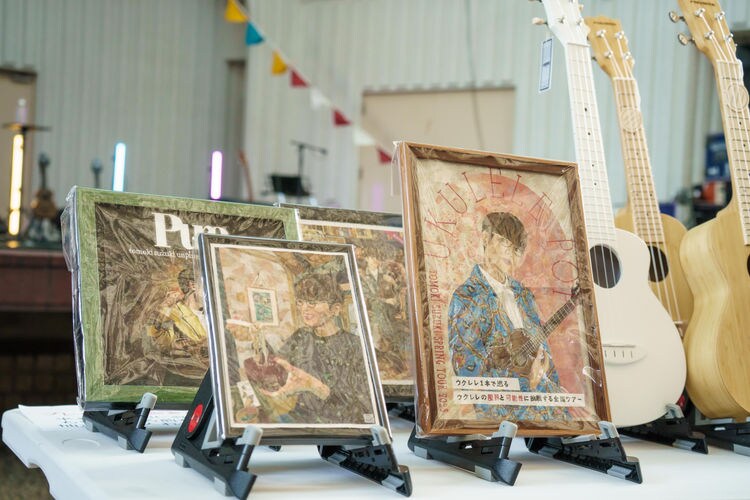 • ライブ終了後は大抽選会&サイン会。賞品にはメーカー提供のウクレレや、素敵なアート作品など豪華アイテムがずらり。サウンドハウスもウクレレを提供!当選者には鈴木さんから直接手渡しという嬉しいサプライズも。ファンとの交流タイムは暗くなるまで続くのでした。