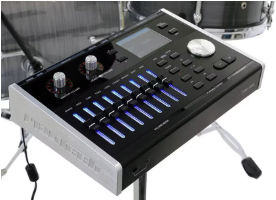 フェーダーが付いた実用性が高いモジュールに加え、各パッドにはメッシュパッドを採用。4脚のドラムラックにより、高い安定性を実現しました。
