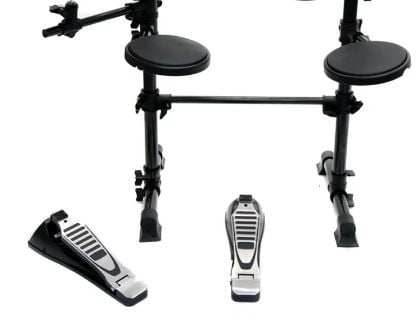 スネア、タムには耐久性の高いラバーパッドを、キックには静穏性の高いスイッチ式ペダルを採用。高さ調整可能なラックスタンドにより、お子様に合わせたセッティングも可能です。