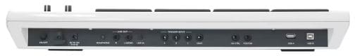 背面パネルには3つのトリガーインプット、ハイハットの接続端子を搭載。適合するパッドを接続してドラムキットのように扱うことができます。ステレオミニ端子のラインインプットも備えているため、お好みの音楽に合わせて演奏を楽しめます。アウトプット端子はステレオミニタイプのヘッドホンアウト、標準フォンタイプのラインアウト端子を搭載しており、環境に合わせてスピーカー、ヘッドホンから音声出力ができます。
