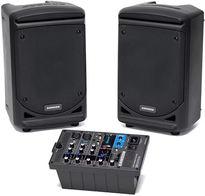 セパレート型は、スピーカーとミキサーが別々に用意されているセットです。会場に合わせてスピーカーを配置することができ、広い範囲に音を届けます。軽量でありながら出力が大きい製品も多く、スタンドに立てて使用可能、場所を選ばす様々な用途で活躍します。中にはデジタルエフェクトやフィードバック検知機能(ハウリング対策)、フロアモニターの接続に使用できる外部出力端子を装備したモデルもあります。