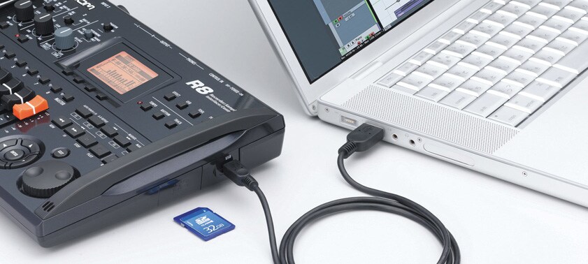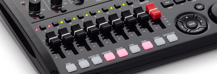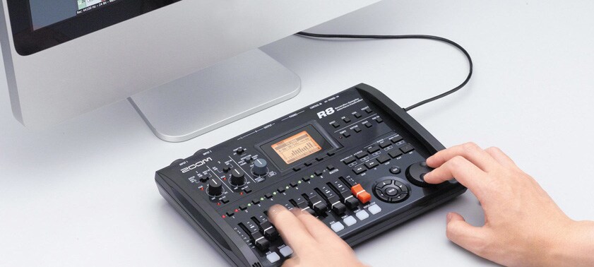 16/24ビットリニア、44.1/48kHzサンプリングのWAVフォーマットで、8トラック分のマルチパート・レコーディングが行えます。UNDO/REDO機能を備え、直前に行ったレコーディングを取り消して、元の状態に戻すことが可能。完成した楽曲は、R8内部にミックスダウンしてプロジェクトごとに保存できます。