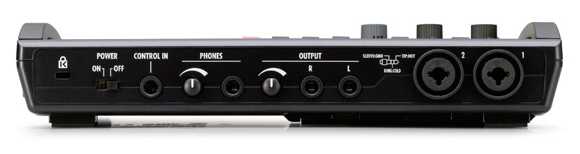 ファンタム電源を供給できるXLR/標準フォーン兼用端子を2基搭載。スタジオ仕様のコンデンサーマイクを使った、本格的なレコーディングが可能です。ギター/ベースなどの楽器入力に対応するHi-Zスイッチ(1ch)も備え、あらゆる入力ソースに対応します。