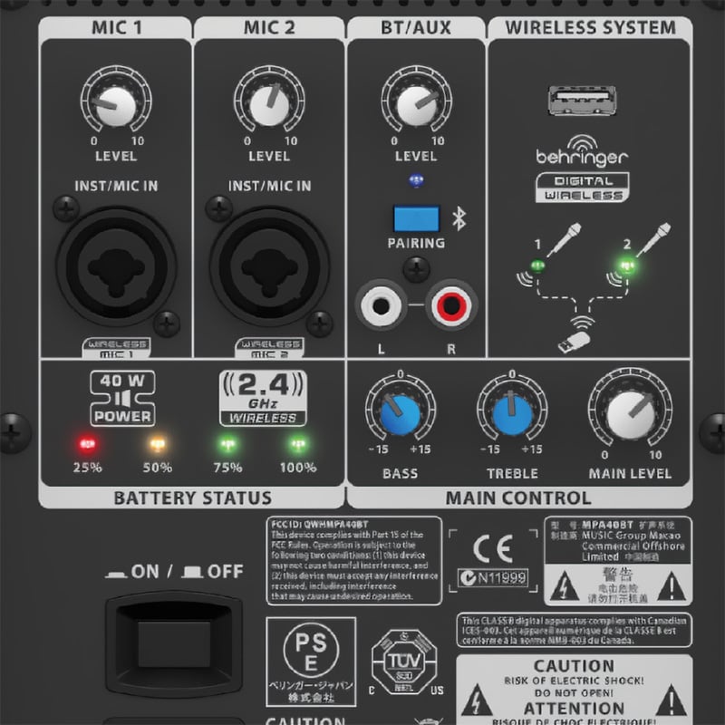MPA40BTは、超低ノイズ&高品質のマイクプリアンプ、2バンドEQ、Bluetoothレシーバーを搭載した2チャンネルミキサーを内蔵しています。別売りのBEHRINGER ULMシリーズデジタルマイクをシームレスに統合することで、MPA40BT-PROシステムを拡張し、あらゆるライブサウンドアプリケーションに対応できます。