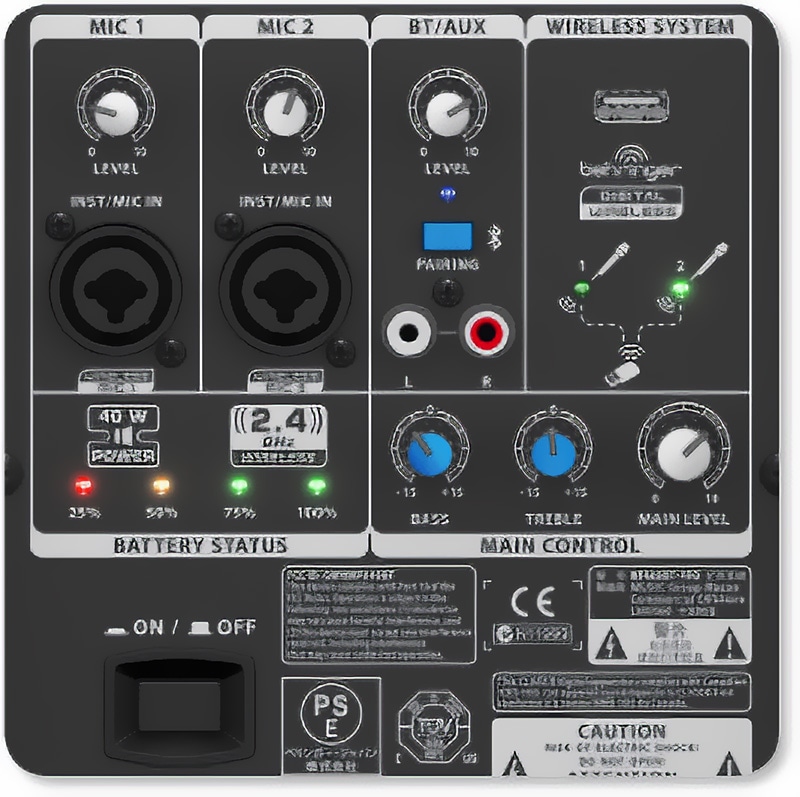 MPA40BT-PROは、超低ノイズ&高品質のマイクプリアンプ、2バンドEQ、Bluetoothレシーバーを搭載した2チャンネルミキサーを内蔵しています。別売りのBEHRINGER ULMシリーズデジタルマイクをシームレスに統合することで、MPA40BT-PROシステムを拡張し、あらゆるライブサウンドアプリケーションに対応できます。