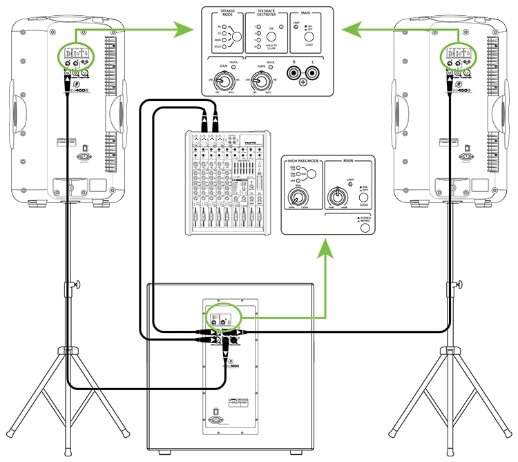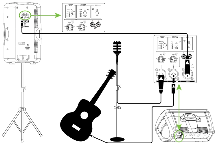 PA、DJ、モニター、ソリストの4つのモードを素早く切り替え可能 - 簡単操作の自動フィードバック除去機能
