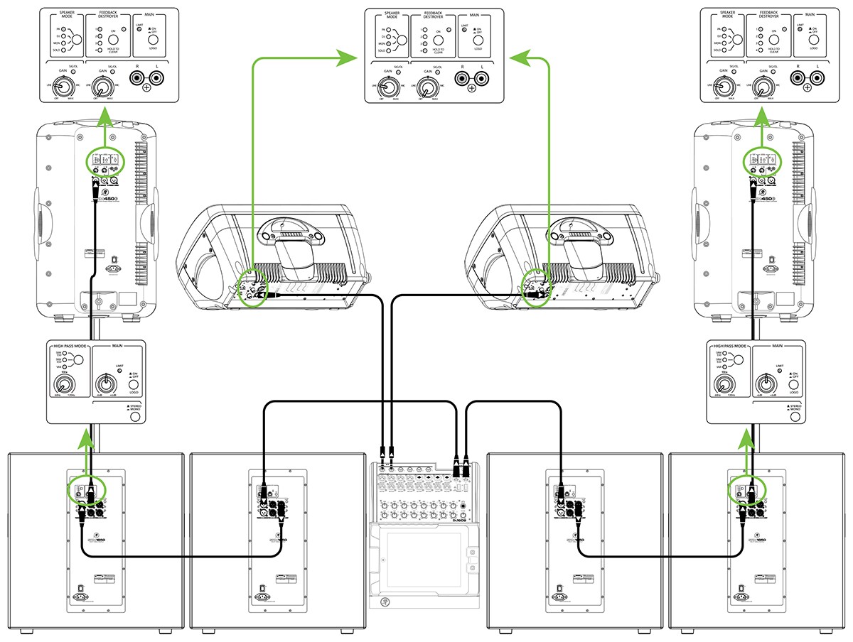 1000Wのシステムパワーとカスタム設計のトランスデューサーにより、ライブ会場を余裕で満たす高出力を実現