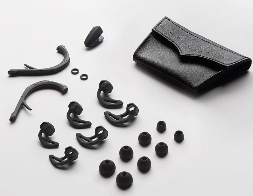 ■付属品:交換用イヤーピース×8セット(XS/S/M/L)、ActiveFlex スポーツ・フィン3セット(S/M/L)、ActiveFlex スポーツ・イヤーフック 1セット、3Dカスタム・キャップ固定用リング×1セット、革製キャリングポーチ