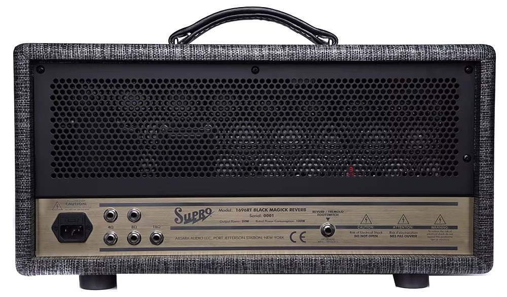 ジミーペイジがロックンロール・ホール・オブ・フェイムへ貸し出した'59 Supro 2 x 10仕様のハイゲインアンプを再現したBlack Magickを元に、Lenny Kravitz(レニー・クラビッツ)と共同開発したアンプヘッド1696RTH Black Magick Reverb Head。極上のミッドレンジとタッチダイナミクス、SUPROならではのトーンテクスチャーを捉えつつ、オールチューブリバーブ、2バンドEQ、マスターボリュームノブを追加し、高い柔軟性を実現。