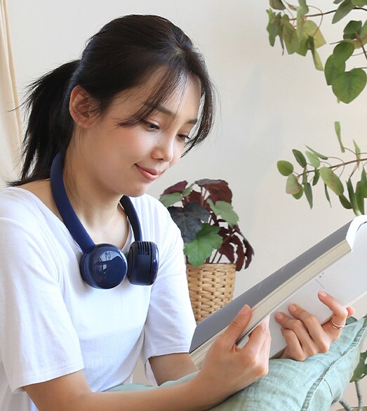 FLEX 羽根なし首かけ扇風機は、羽根をなくした扇風機として安全に設計されたポータブル扇風機。首かけ部分のシリコンネックバンドは360度自在に変形できるので、首にかけて角度を調整すれば、ハンズフリーで好きな位置に涼しい風を送り楽しめます。