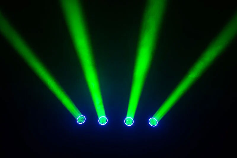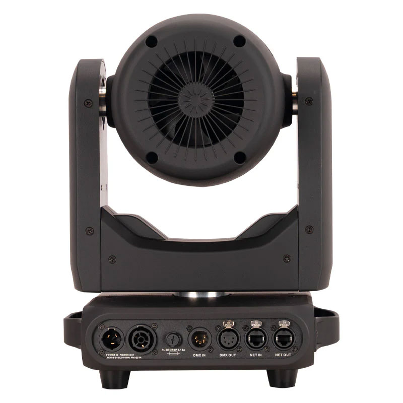 超高速・小型ながら高出力のビームウォッシュ。独立制御RGBL 60W×4とRGBWリングLEDで多彩な演出が可能。3~45度のモーターズーム、360度連続動作対応、優れたカラーミキシングと高度な制御機能を備え、プロ用途に最適。