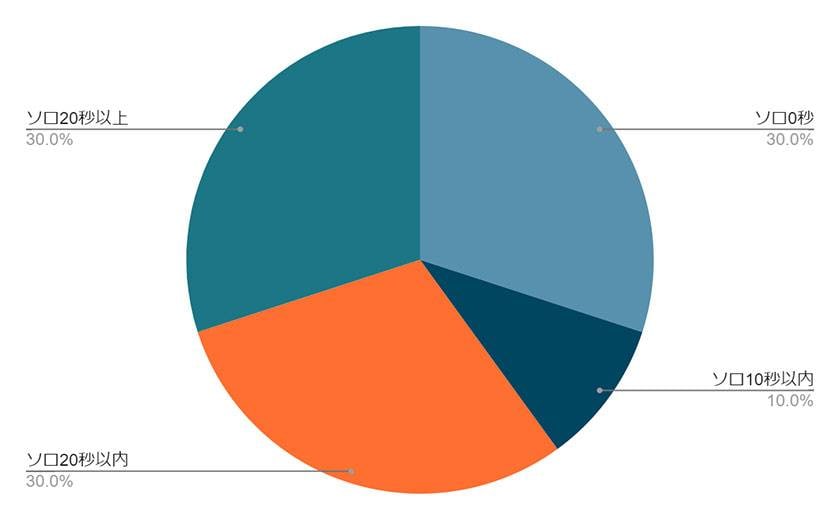 二つのグラフを並べるとその差は歴然です。ソロ0秒が25%→64.3%まで増加し、反対に20秒以上は66.7%→21.4%にまで減少しています。