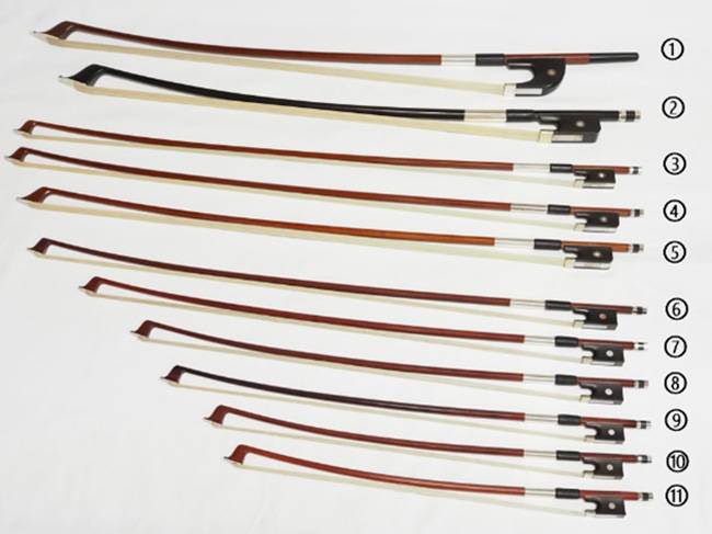 弦楽器の弓は楽器の種類によって形状サイズが異なります。