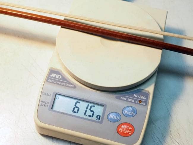 4/4の弓の重量については「58g~64g程度が、一般的な4/4の弓の重さ」、と考えます。