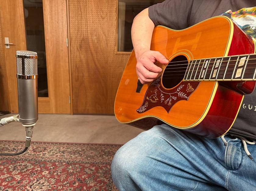 アコースティックギターでは、ボディの鳴りや太さが自然に出てくる。