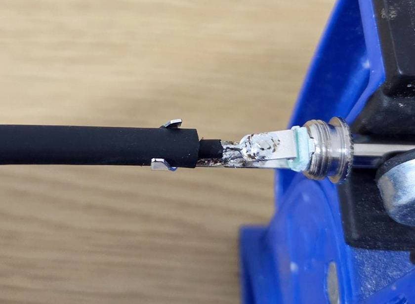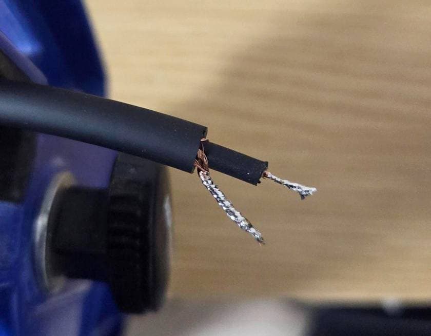 実は、芯線の周りにある黒い被覆は絶縁体になっています。接触してしまうと音が小さくなってしまう原因になるので、工程4のあたりでカッターを使って取り除いてください!