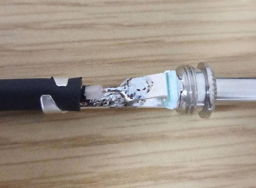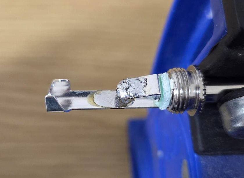 5. プラグを分解し、チップ部分とスリーブ部分にはんだを乗せます。