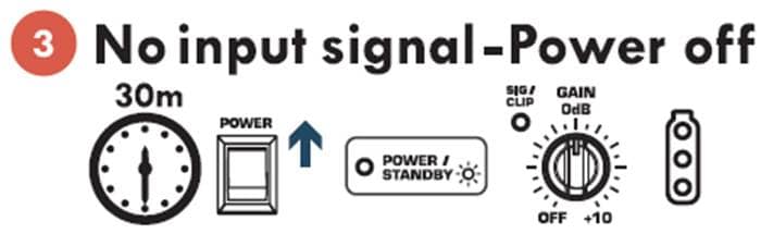 3. 入力信号なし ― 電源オフ(30分):LED消灯