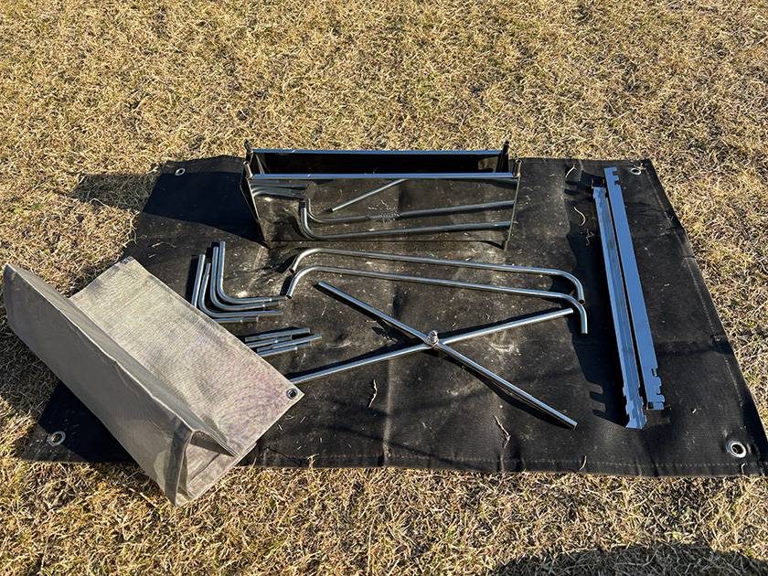 細かなパーツ(上段と下段のメッシュを繋ぐ部分など)も、小分けポケットのおかげで迷子になりにくく、全部まとめてバッグに収納できるので持ち運びも楽々です。