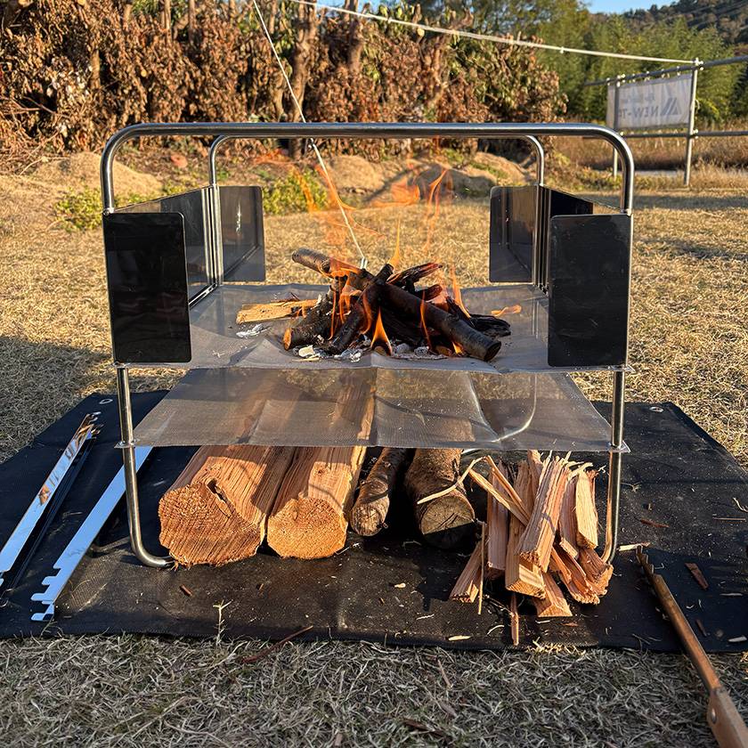 さらに付属のバーを上段にセットすれば、焚火の上と下を同時に使える優れもの!