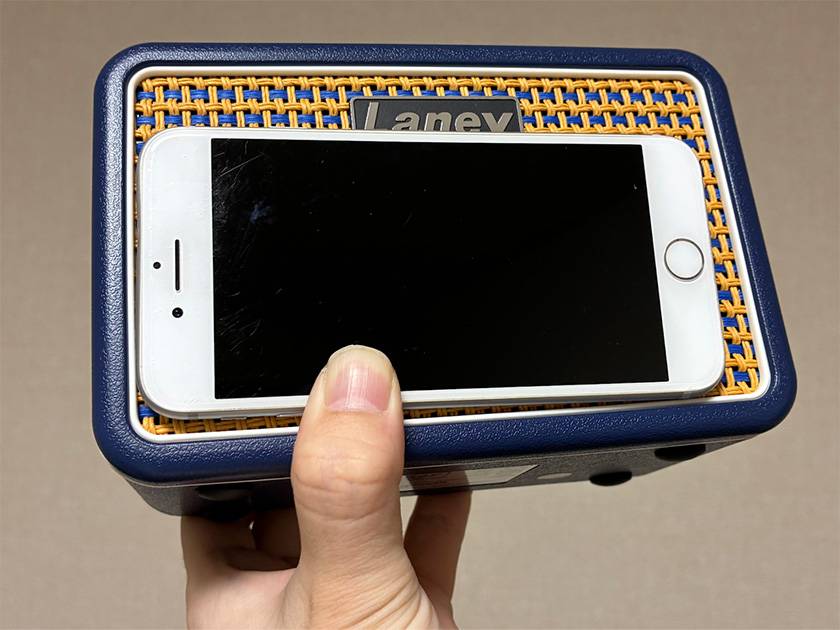 デバイスから音楽やドラムマシンの音を流す場合、アプリを通じてのBluetooth接続とは別でデバイスのBluetooth設定から「Laney PRISM-MINI Audio」と接続する必要があります!