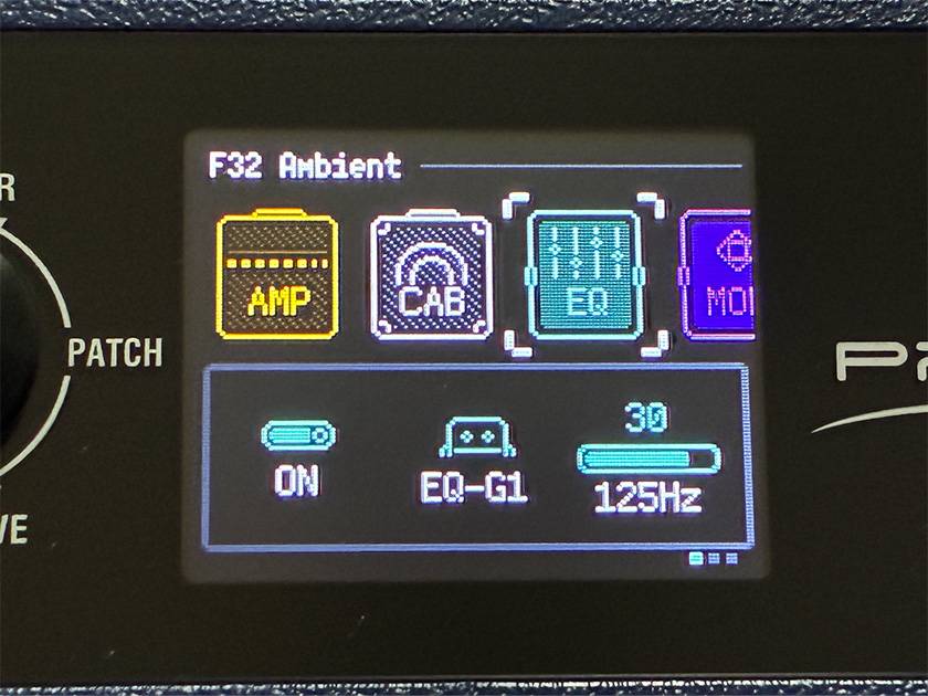 筐体上面にある1.77インチのフルカラーディスプレイは、視認性が高く、操作や編集がしやすいです。ユーザーインターフェースもシンプルで、ディスプレイすぐ横のノブ兼ボタンとBACKボタンだけでほとんどの操作が可能。ボリュームノブは単体でついているのでいつでもボリューム操作にアクセスできます。