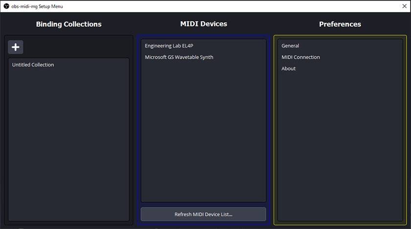 obs-midi-mg Setup起動画面