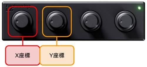 なお解説のため左端のノブでX座標を、左から二番目のノブでY座標を動かします。