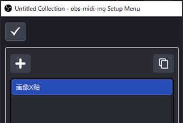 - ソースに動かしたい画像を追加し、obs-midi-mg設定画面を起動します。