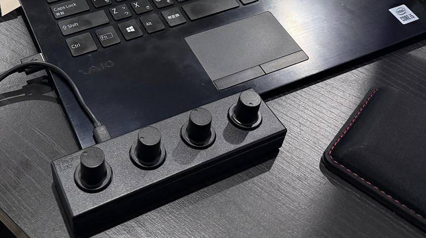 さらに Engineering Lab / EL4P は非常にコンパクトなデバイスなので、ノートPCを使った限られたスペースでの配信などにも便利です。ロゴも刻印タイプで目立ちにくく、配信時に「何それ!?」と思わせるならピッタリ!笑
