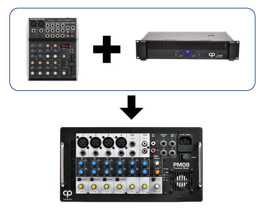 パワードミキサーとは、「パワーアンプを内蔵したミキサー」のことです。