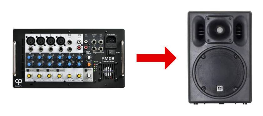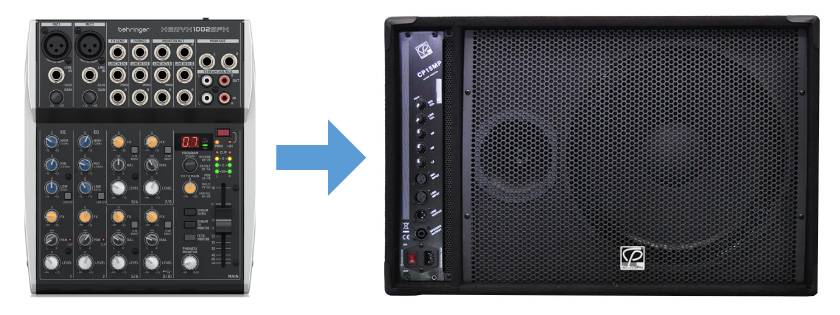例1: ミキサー → パワードスピーカー