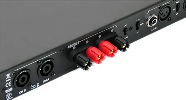 画像中央の黒赤の端子がまさにバインディングポストで、様々な種類があります。