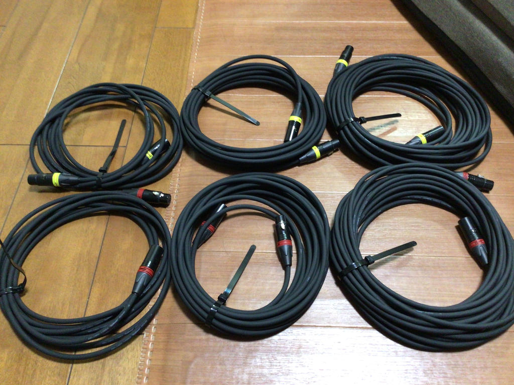 ケーブルの系統分けのために入手しました。今回は3種類の長さを2系統色分けとする為キャノンのオスメス合計6個使用するので赤と黄を入手しました。残る各4個は予備としますがまぁ使うことはない気がします。これまで自作したcanareケーブルは2種の長さだけで10系統色分けの為無駄が多くなりすぎることからリングではなくブッシュの交換で色分けしました。この時は長尺ケーブルを切って自作だったので黒のブッシュは36個も無駄に余りましたがそれでもリングよりは安く済みました。ただこの場合後から付け替えるにはハンダの付け直しが必要となりますが...ブッシュもリングも選んでセットできるなんてあったらもっと使いたい人は増える気がします。 | ||