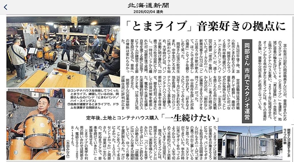 先日、キーボードの写真ではないですが、ライブスタジオが新聞に掲載されましたので送ります。
