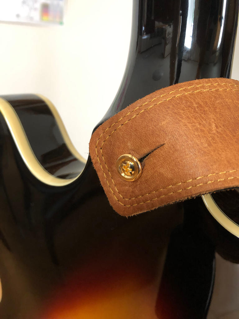 私にとって「高価」なmoody strapの穴が広がって痛むので、こちらに交換すると着脱がらくにまりました。安心しました。しばらくはFender Strap Blocksは必要なさそうです、ギターをグルグル振り回さない限り落ちないでしょう。色はギターの金属パーツと同じゴールドなので見た目も満足です。ネジやまも問題ありませんでした。![]() | ||