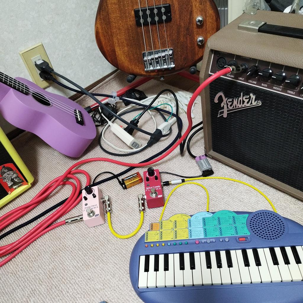 プレテクレコ禁アコギ購入で感服し、アリアのウクレレMaika’i買った後にハードオフでYAMAHAのPortaSound PSS-7をジャンク330円で購入(懐かしの97年ミニキーボード)。普通に使えたがおそらく仕様として小さい音だが高周波ノイズ(コンデンサも要因ではあるが内部は金属シャーシがなくアースが何もないのも原因か?)。チープだがこれはこれで楽しい遊べるおもちゃ。FLAMMAのトレモロコーラスエフェクターがようやく使うときがきた(MOOERコピーでギター用としてはいらない)。ウクレレはそのうちプレイテックのコンタクトピックアップ買う。どんどん安物機材だらけになる