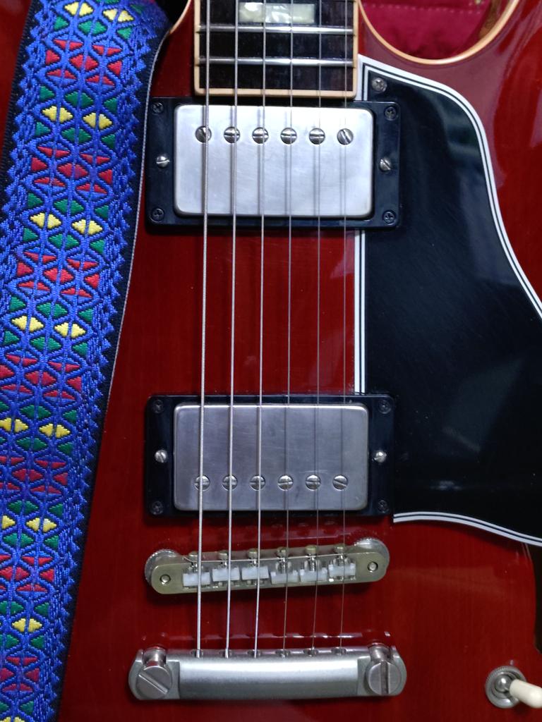 | ES-335に取り付けました。テールピース、ブリッジをレリック加工のものに付け替えたので ピックアップカバーもと思い購入。ピックアップはバーストバッカー・プロですが、加工無しで取り付けられました。ビンテージっぽくなり、なかなか良い感じになりました。 | ||