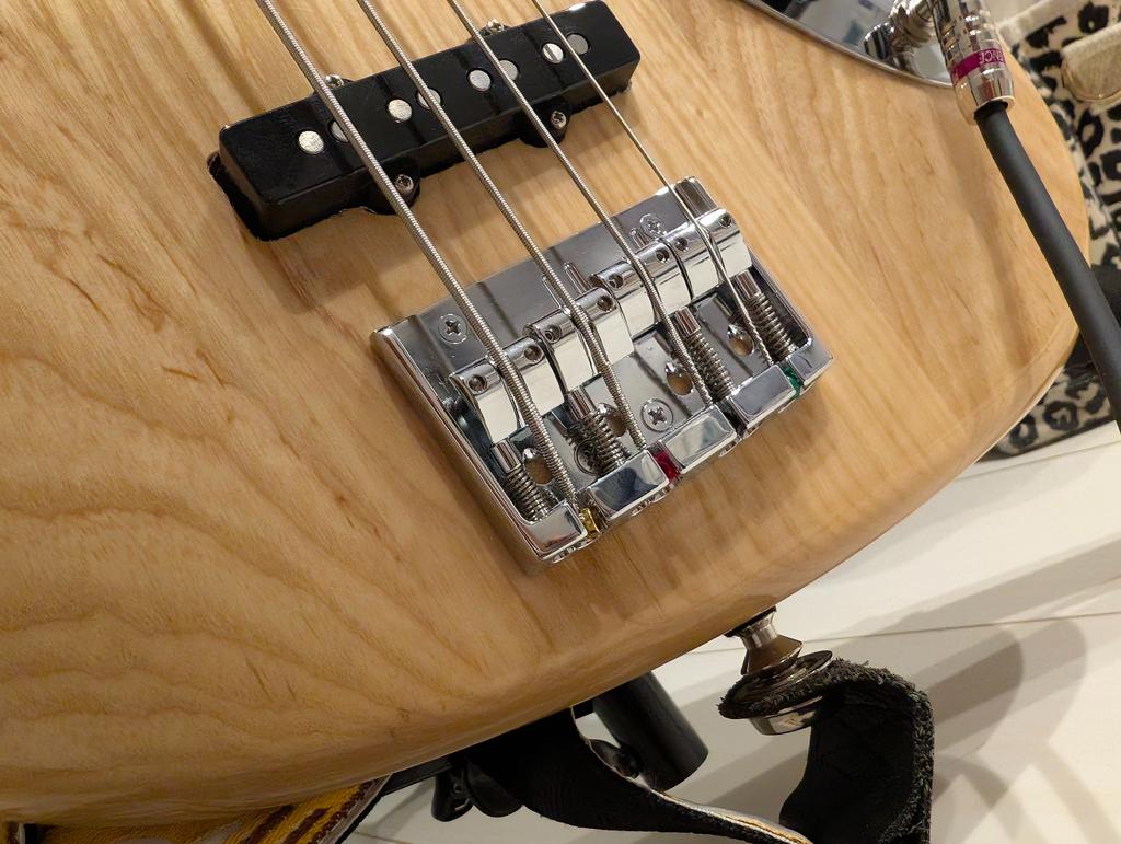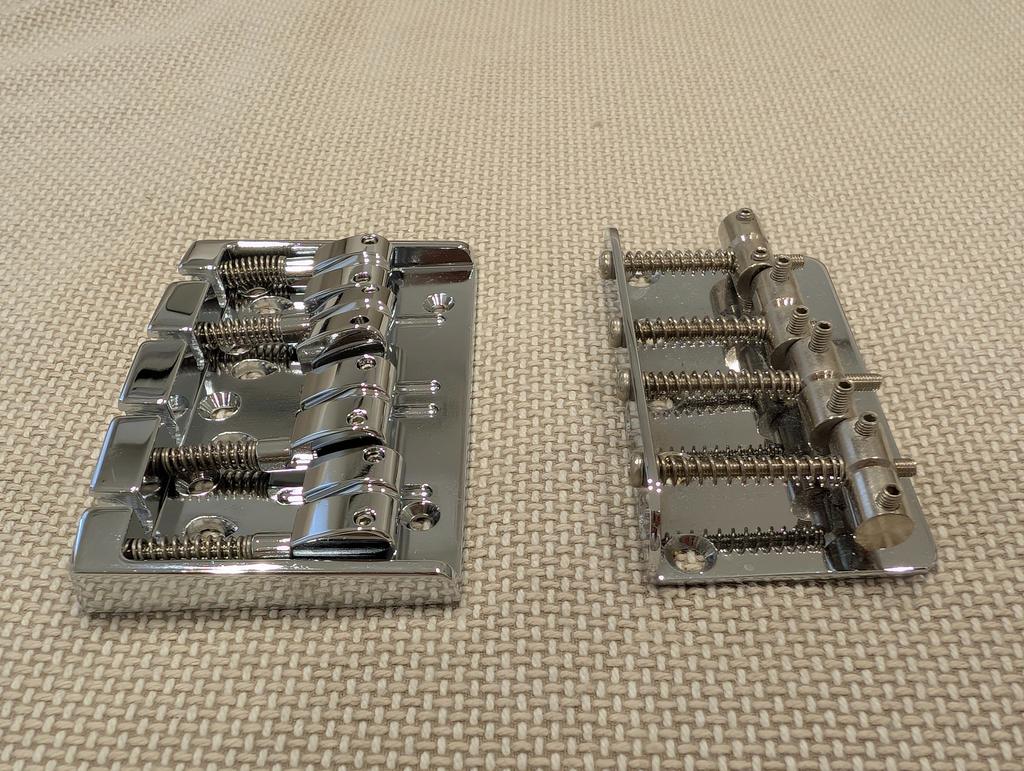 (純正ブリッジは弦の横ずれにより、特に1弦がフレットから外れそうになってたのです)