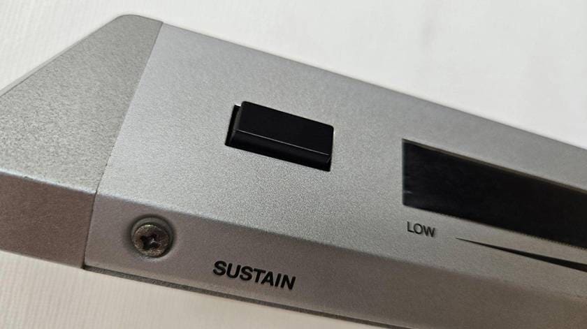 ピアノの足元にあるサステインペダルと同じ働きをします。Logic Proでは、ボタンを押している間、サステインのオートメーションが書き込まれます。