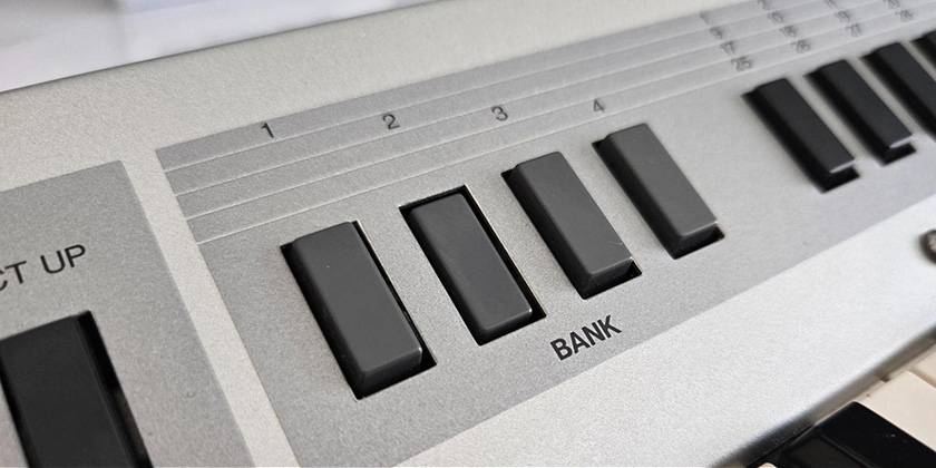 プリセット1を弾いていてプリセット30の音に変えたい時は、一度バンク4ボタンを押してから、プリセット30のボタンを選ぶ必要があります。