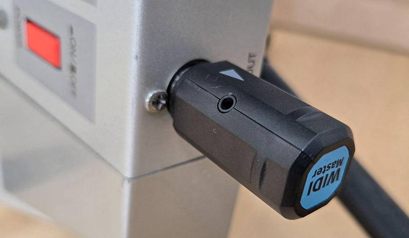 かなりガッチリ挿さりますので、万が一ケーブルを踏んでもスッポ抜ける可能性は低いです。また市販のMIDIワイヤレス送信機も使用可能です。