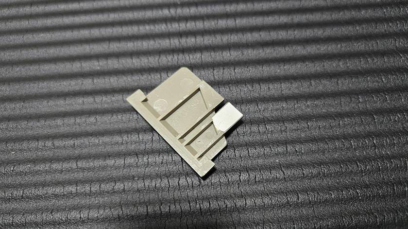 経年劣化のせいかツメの付け根が白くなっているので、割れないようタミヤの工作用プラバンと接着剤で補強しました。将来的に肉抜き部分は一部パテで埋める予定です。