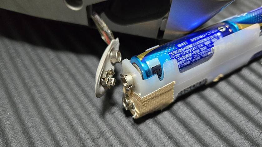 電池ホルダー内の金具(バネ?)が外れてダメになってしまい、分厚く折ったアルミホイルを突っ込んでなんとか通電させています。動作には全く問題ないですが、やはり不安です。